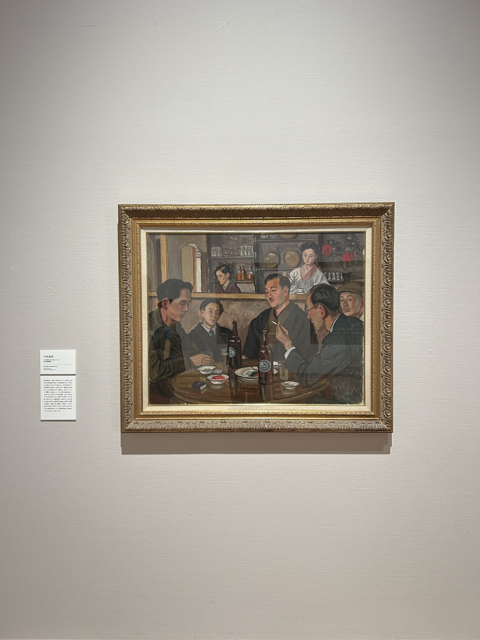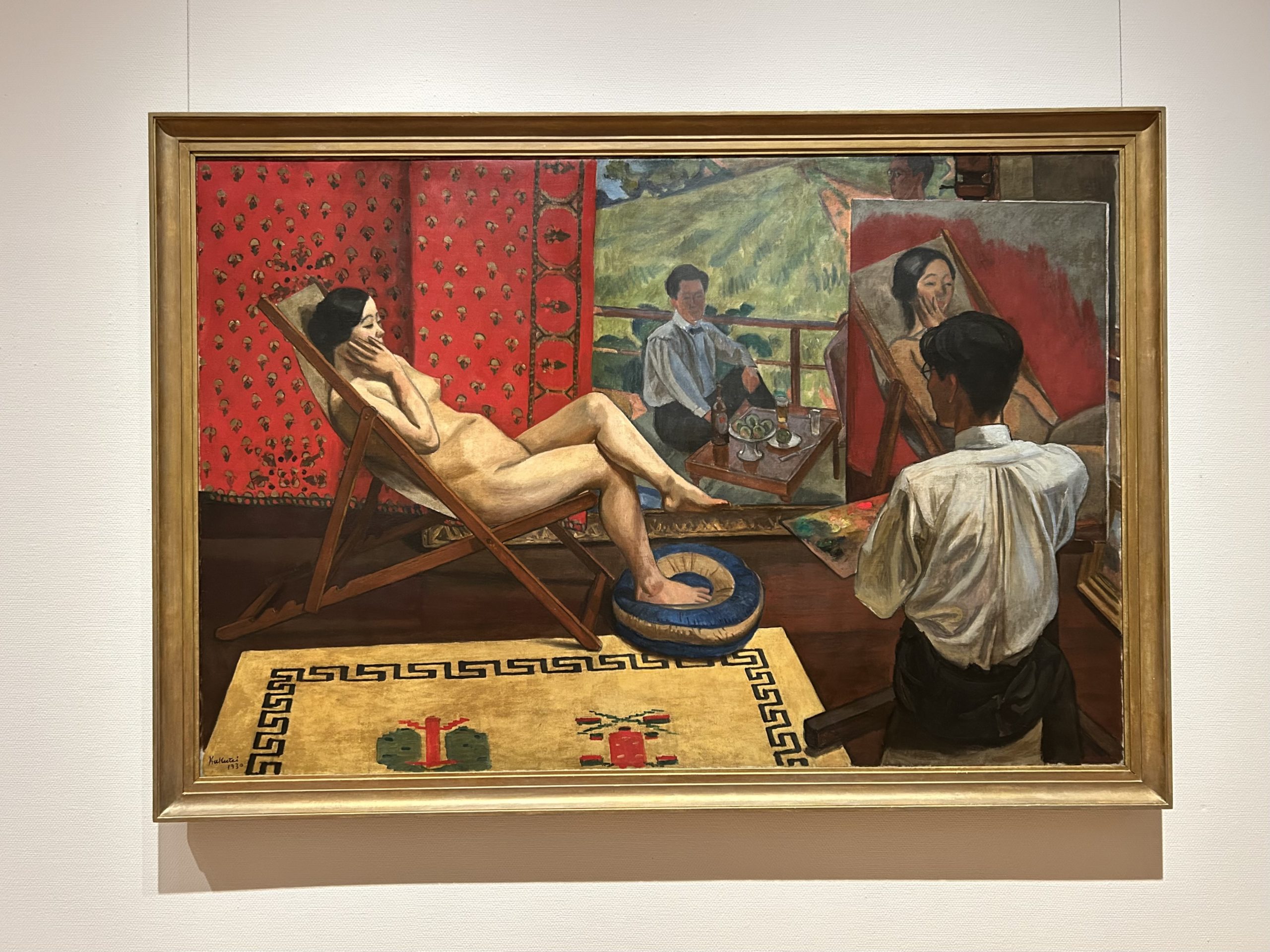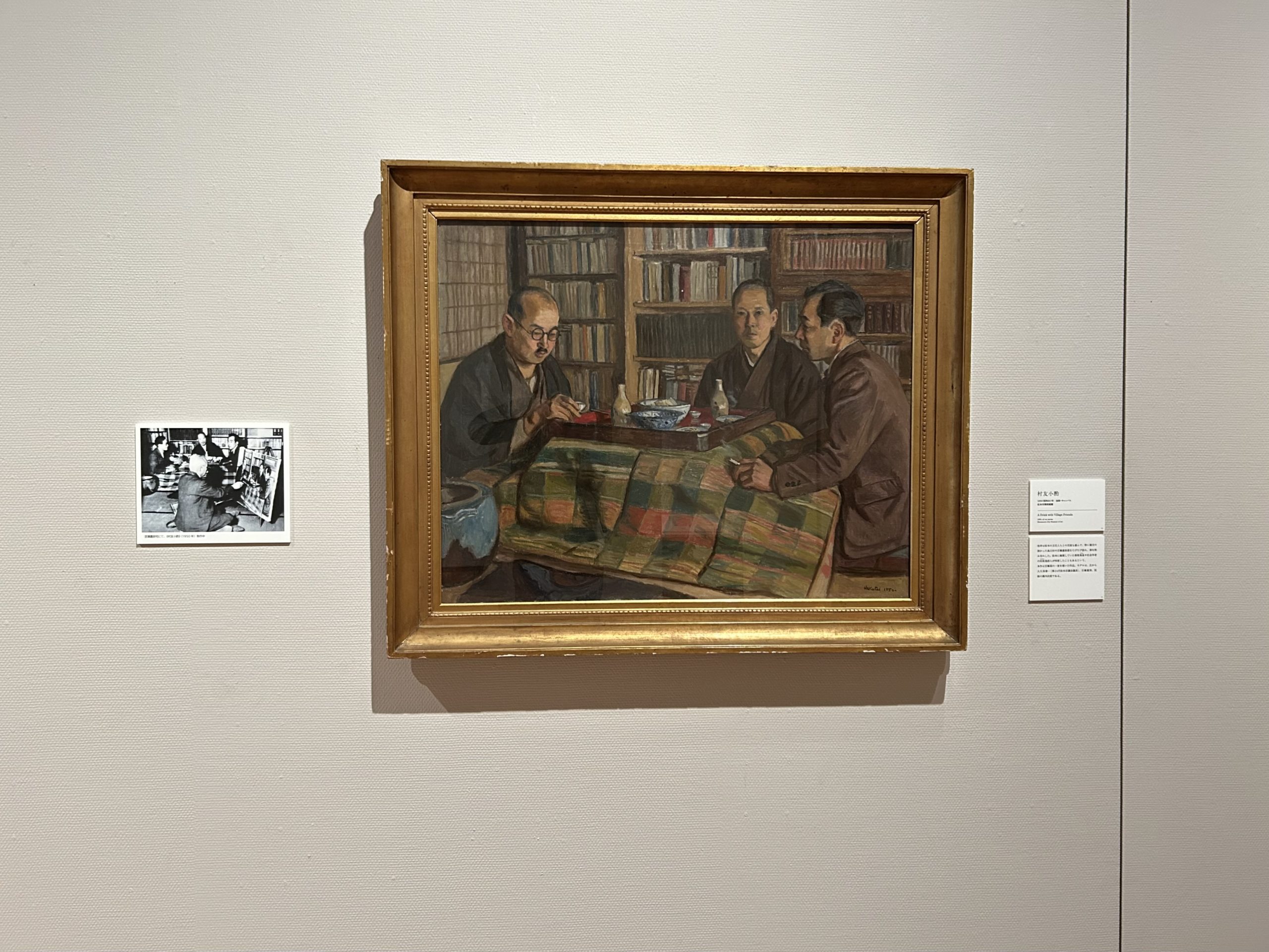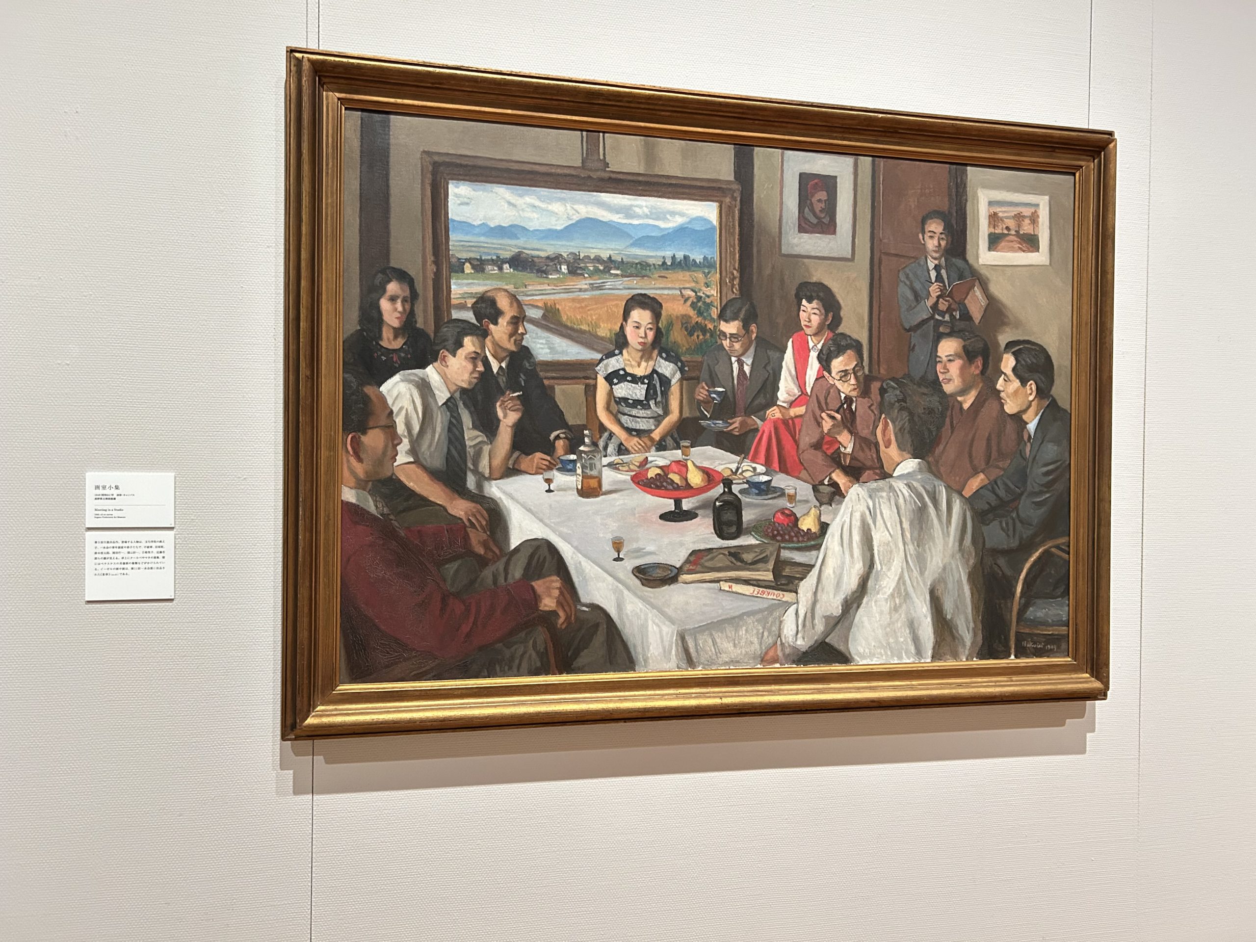 卓上にクールベやマネの画集、壁にはベラスケスの肖像画の複製などがかけられている。イーゼルの画中画は、第11回一水会展に出品された《麦秋》である。